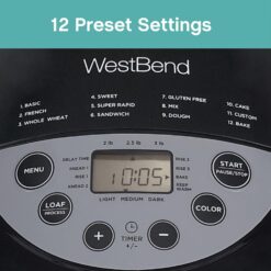 West Bend Hi-Rise Bread Maker Programmable Horizontal Dual Blade with 12 Programs Including Gluten Free, 3-Pound, Gray