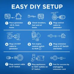 - Comes with 25′ generator Smart Switch Ready control cable and integrated 25′ generator L14-30P power cord