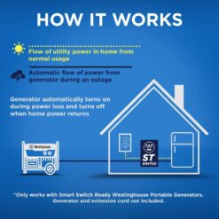 - Only compatible with Westinghouse Portable Generators with Smart Switch Ready outlet including the WGen5300, WGen5300DF, WGen7500, WGen7500DF, WGen9500, WGen9500DF, WGen12000, WGen12000DF