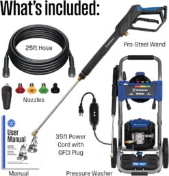 Westinghouse WPX3000e Electric Pressure Washer, 3000 Max PSI and 1.76 Max GPM, Induction Motor, Onboard Soap Tank, Spray Gun and Wand, 5 Nozzle Set, for Cars/Fences/Driveways/Homes/Patios/Furniture
