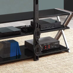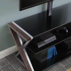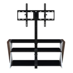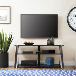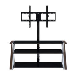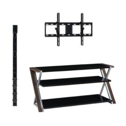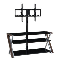 The Whalen Xavier 3-in-1 TV Stand offers a versatile patented design with three different options for displaying your flat screen. Choose from swivel mounted, wall-mounted and table-top displays. Create the perfect viewing angle with the swivel mount capabilities to pan 45 degrees left or right that supports most 70″ flat panel TVs up to 135 lbs. Or keep it classic and display your TV on the tabletop that supports flat screens up to 65″. This stand offers ample room for storing your media components, gaming systems and accessories. The sleek console has a contemporary design that features clean lines with black and silver legs and black tempered glass shelves for a modern touch that matches most any decor! Whether you choose to use the TV stand in your living room, game room, kid’s room or any other area, this media center is perfect for any room in your home! From traditional to modern and all things in between, Whalen is sure to have a television stand to fit your needs.