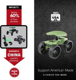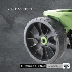 - 10 INCH NEVER FLAT TIRES never need air and are large enough wheels to roll over some of the roughest of terrain in the yard, garden, lawns and more. The Wheelie Scoot is a premium American made rolling garden cart with seat that is a excellent addition to your lawn and garden tools. Add it to your wagon or wheelbarrow or other Vertex Made gardeners gardening cart or scoot. Wheelie is great with rolling, yard cart, Lawn cart Wheelbarrow, wagon and other carts on wheels or rack.