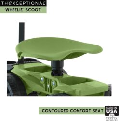 - ROLLING GARDEN CART WITH SEAT. The Wheelie Scoot is a premium American made rolling garden cart with seat that is a excellent addition to your lawn and garden tools. The garden seat on wheels provides the convenience of a tool rack with the comfort of a garden stool. Combine your Wheelie a vertex yard cart, Lawn cart Wheelbarrow, wagon and a sitting kneeler bench. Replaces Vertex Easy Up garden carts seat on wheels with never flat tires.