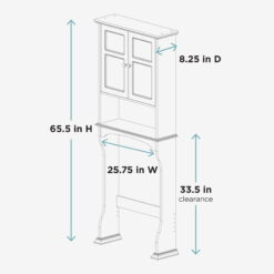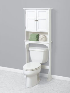 Transform wasted space into storage inside your bathroom with the Zenna Home Collette over-the-Toilet Bathroom Spacesaver. Using the room above your toilet, this spacesaver provides a mix of open and hidden storage. The bottom shelf is 33.5 inches from the ground, allowing it to fit over most standard toilets. The spacesaver is made of durable engineered wood. Its white finish is complemented by decorative crown molding and pewter hardware. Illustrated instructions are included.