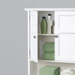 White Bathroom Spacesaver with Cabinet and 3 Shelves, Zenna Home Collette over-the-Toilet