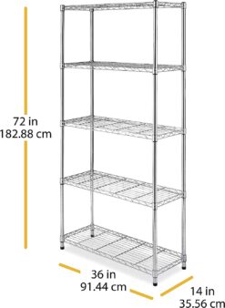 Whitmor Supreme 5 Tier Shelving with Adjustable Shelves and Leveling Feet – 350 lb. Capacity per Shelf – Chrome