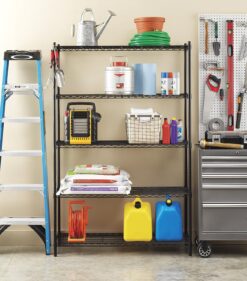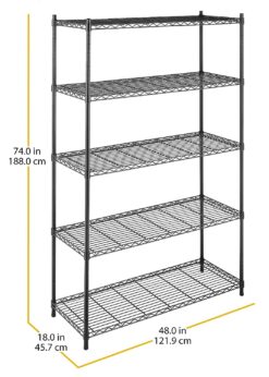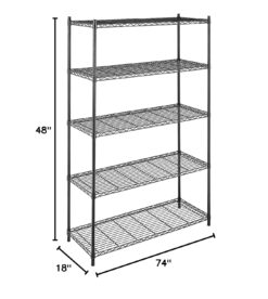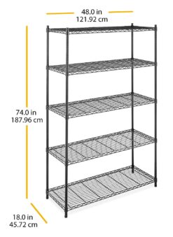Whitmor Supreme Tier Shelving 5 Adjustable Shelving-500 Pound Weight Capacity Per Shelf-Leveling Feet, 18″ x 48″ x 74″, Black