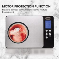 - Safe and Easy To Use: An Extended Cooling function prevents ice cream from melting; A Motor Protection function stops the motor from churning to prevent overheating or damage once the mixture solidifies