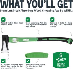 WilFiks Splitting Axe, 26” Camping Hatchet for Chopping and Kindling Wood and Branches, Forged Carbon Steel Hand Maul Tool for Gardening, Fiberglass Shock Reduction Handle with Anti-Slip Grip