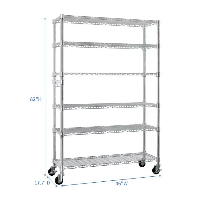 Winado Steel Heavy Duty 6-Tier Utility Shelving Unit (46.06-in W x 17.71-in D x 81.88-in H), Silver, (45-lb Capacity Per Shelf)