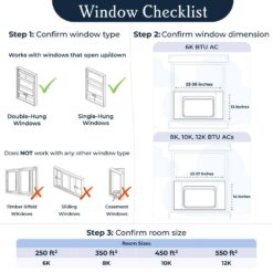 - Window requirements: designed for double-hung and single-hung windows with an opening width of 22 in. to 36 in. and a vertical opening of at least 13 in.