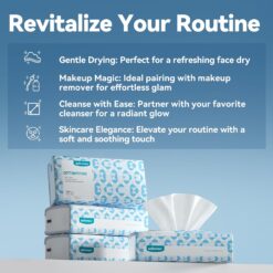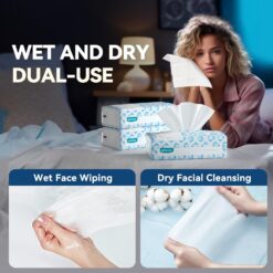 - Gentle Dry Wipes: Our cotton dry wipes offer a unique alternative to traditional paper tissues. While resembling the size of facial tissues, they are twice as thick and stronger, providing a soft and durable solution. Note that these cotton face towels are not flushable.