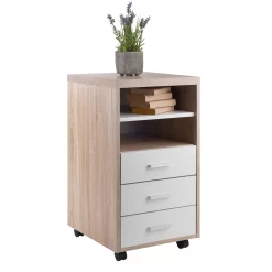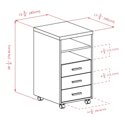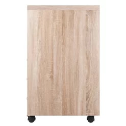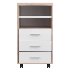 Customize your home or professional workplace with the Kenner Mobile Storage Cabinets. This Winsome Wood Kenner 3-Drawer Storage Cabinet is practical and functional on its own or can be combined with the Modular Desk Top along with any of the other Kenner Mobile Cabinets (each sold separately). The storage unit, which has 3 drawers and 2 open shelves, is ideal for a home office, artist’s studio, or anywhere you need storage with a bright, contemporary look. The unit moves easily on sturdy casters, two of which lock. And the styling of the cabinet is as handsome as it is versatile. The frame is made of durable composite wood in a finish that has all the appearance of natural reclaimed wood. The cabinet facings and shelf are finished in linen white with modern matte-silver plastic cabinet drawer and door pulls.