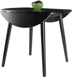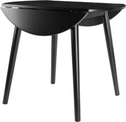 Bring charm and a compact footprint to your dining area with the Moreno Round Drop Leaf Table. Featuring two drop leaves, the table expands to 36″ in diameter, perfect for seating up to 4 for a casual brunch or intimate dinner. With the leaves folded, use the table as a sideboard for extra storage or display. Made of Solid Wood in a lustrous Black finish.