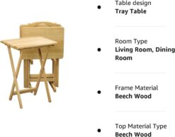 Make entertaining simple and easy with the Winsome Wood Alex 5-Piece Snack Tables. This set includes four tables and for convenience a storage rack to store your tables out of the way when not in use. The classic rectangular shape of these snack tables with gently curved corners makes these tables simple but still very versatile. Ideal for setting out appetizers at a party, enjoying a meal while relaxing on the sofa, or for working on your laptop. This set of foldable tables open up to X-frame bases which make these table not only look good but also help with stability. Tables easily open up, with a wood stopper on the other end helping the legs stay standing. Great for daily use and compact enough to store in the closet. Constructed of solid wood that is finished in a clear lacquer to highlight the natural wood grain.