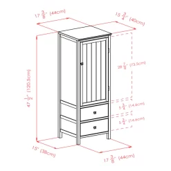 Bring a French country look and modern convenience to your storage with the Brooke collection. The wainscoting panel in the cabinet door will add charm to the kitchen, dining area, or anywhere you need handsome storage. This cupboard has a three-quarter cabinet with interior shelf and two lower drawers. Constructed of solid and composite wood in walnut finish and brushed silver accents.