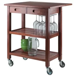 Winsome Wood  Brown Wood Base with Wood Top Rolling Kitchen Cart (16.66-in x 28.27-in x 33.07-in)