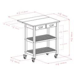 - Kitchen cart constructed of solid and composite wood in walnut finish