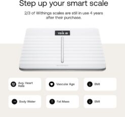 WITHINGS Body Comp – Scale for Body Weight and Complete Body Analysis, Wi-Fi & Bluetooth, Baby Weight Scale, Digital Scale, Accurate Visceral Fat, Heart Health, Scales Compatible with Apple, FSA/HSA, White