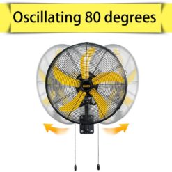WOCK IFYFI20 HICFM 20 in. 3 Speeds High Velocity Oscillating Wall Mounted Fan in Yellow with 1/3 HP Powerful Motor, 4800 CFM