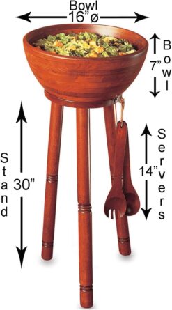 Woodard & Charles Extra Large Salad/Serving Bowl Set with Stand. 16″ x 7″ Bowl, 30″ Stand, 14″ Servers -perfect for Caesar Salads, Large Salads, Popcorn, Chips or Fruit.