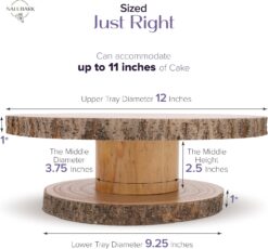 - Varnished Finish: Our stylish cake stands feature a varnished coating that enhances beauty and ensures easy cleaning. Each cake holder includes two detachable, glossy trays for versatility and elegance. Each tray is surrounded by smooth bark, adding the perfect final touch.