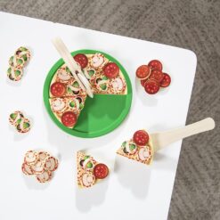 - PRETEND PLAY PIZZA SET: The Melissa & Doug Pizza Party Wooden Play Food includes six sliceable wooden pizza slices and more than 30 toppings for pretend play fun