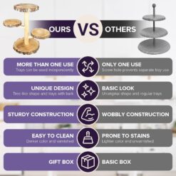 - MULTI-FUNCTIONAL CUPCAKE TRAY STAND: When assembled, this cookie stand can be used for displaying cupcakes, cookies, or donuts. The wooden trays can also be used separately, to serve cheese or appetizers, so it can be used together with your charcuterie board. Add the stand and trays to your cupcake stand set.