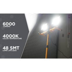 Woods WL40236S 6000 Lumens Portable LED Dual Head Work Light with Tripod