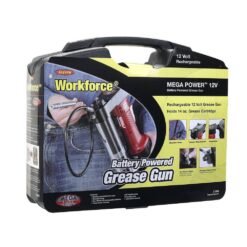 The highest standards for engineering and craftsmanship are built into every Workforce grease gun making them the choice for those who work under rugged conditions! The Workforce 12V Cordless Grease Gun Kit features a powerful 12v motor, two 12V batteries, and a storage/carry case. The durable construction, heavy duty die-cast head, and plated steel barrel ensures optimal performance, every time.