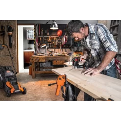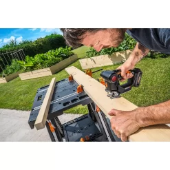 WORX engineers thought of everything with this saw. Meet the WORX 20V Axis Cordless Reciprocating and Jig Saw. It’s a fully-featured, demolition ready, lumber, metal, PVC pipe, fiberglass, aluminum, and tree root cutting reciprocating saw… then push the big red pivot button and fold down the head and it’s a maneuverable, fast, easy-to-use jigsaw for cutting out shapes for your latest project. No need to buy two separate saws. They’re both right here. It’s comfortable and compact, so you can work long hours with less hand and arm strain. And it’s cordless, so you don’t have to worry about getting tangled up with all the twisting and turning a jigsaw does. The side location of its motor lets the gearing and motor work simultaneously, preventing slippage and misalignment, and driving all that power in one continuous motion for a much more efficient tool. The attached dust blower and LED light keep the surface of your project clean and illuminated, so you can see exactly what you’re cutting. And its quick tool-less blade change system accepts any standard t-shank blade so you can cut whatever material you need to. But this kit comes with wood, metal, and aluminum jigsaw blades, and a wood reciprocating saw blade to get you going right out of the box. 2 great saws in 1, and there’s more… Same Battery. Expandable Power. The 20V Power Share battery and charger that comes with this tool can be used on any other tool on the WORX Power Share platform. You can build an entire WORX cordless tool collection with fewer batteries. That’s convenient and cost-effective.