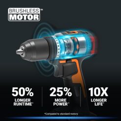 - MORE DRILLING POWER: This cordless drill features a high-efficiency brushless motor that runs 50% longer, is 25% more powerful, and delivers a 10X longer life than standard brushed motors