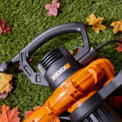 The Worx 12-Amp 3-in-1 Leaf Blower/Mulcher/Vacuum is the easy-to-use, all-in-one system for blowing, vacuuming, and mulching leaves. Stop raking and bagging, and start blowing and mulching and turn 16 bags worth of leaves and debris into just 1. No more lining up seemingly endless bags on the curb. This machine does it all with a flip of a switch and no tools. Its balanced single-hand operation makes it easier to maneuver and control without much fatigue. It only weighs 7.5 lbs., so almost anyone can use it, even though this 3-in-1 pours out an impressive 250 MPH of airspeed for taking on challenging debris removal tasks. While its 2-speed control lets you dial that down to 160 MPH for less demanding applications. With a hi-impact metal impeller chopping down leaves into 1/16th of their original size, your days of making multiple trips to the drop-off site are over. With this 3-in-1’s powerful 12-amp motor, this electric blower makes an efficient alternative to gasoline-powered tools. There is no downtime with this debris-clearing system—blow the leaves into a pile, vac and mulch them, and dump the bag for compost or collection.