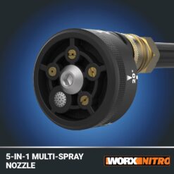 High-powered outdoor cleaning is unrestrained with the Worx Nitro 20V Hydroshot Plus Portable Pressure Washer. Built with the Brushless Motor 2.0, this cordless power washer delivers 40% more power and 10% longer run time than standard brushless motors, plus a 10X longer life over brushed motors. This high-performance battery powered pressure washer features an upgraded pump design to deliver 710 MAX PSI/0.9 MAX GPM to effortlessly blast away grime and spot clean. The Hydroshot Plus runs on a Power Share PRO battery that’s designed to stay cool, resist damage, and optimize runtime. No matter how wet it gets, this robust battery will be protected within the power cleaner’s IPX5 waterproof housing. Designed to be easy on the user, this cordless pressure washer lets you stay in control with maximized comfort thanks to the lightweight 4.41-lb. design. With a more compact profile, the Hydroshot Plus delivers the best power-to-weight ratio over previous models. That means a more powerful stream in a lighter package. Adjust the water force with two pressure settings: High-pressure for tough jobs and low-pressure ECO mode everyday cleaning. ECO mode also helps conserve runtime so you can do more, charge less. With the Power Share PRO battery, you can take this cordless pressure washer anywhere—a perfect solution for cleaning exterior surfaces, lawn furniture, campsites, boats, cars, RVs, ATVs, and more. This high pressure washer has an extended lance that allows for effective cleaning out-of-reach spaces (Max 24.3 ft. horizontal & 19.7 ft. vertical reach). For added flexibility, rely on the 20-ft. draw hose to draw water from any fresh source—such as a bucket, lake, or pool. The quick-connect design also allows for convenient use with a garden hose. Maintain control of your high pressure washer output with the 5-in-1 multi-spray nozzle that can quickly switch between five spray settings: 0°, 15°, 25°, 40°, and Rinse.