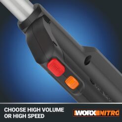The Worx Nitro 40V LEAFJET Leaf Blower is what innovative engineering in battery-powered leaf blowers looks like. Despite its compact design, it’s a 620 CFM blower. So it boasts air volume and speed (165 MPH) comparable with or better than much larger blowers. It weighs less than 7 lbs with the batteries attached, making this a truly lightweight blower, so almost anyone can use it to clear leaves and debris from around the property. Don’t let the unusual design of the LEAFJET fool you, it’s extremely easy to use. And this clever new form-factor was made like that for a reason. The revolutionary Variable Air Control Nozzle slides into two positions. You move it forward for more air volume, to clear a wider area, and to take advantage of its 620 CFM blower capabilities. You pull the nozzle back to make it more narrow and direct, which will increase the airspeed and is great for stubborn debris and wet leaves. This Worx 620 CFM blower gets more done on a single charge than battery-powered leaf blowers of previous generations. And the handy charge level indicator lets you know just how much life this 40V leaf blower has left before you need to switch out its dual 20V Power Share PRO batteries or recharge the ones you’ve been using. The Nitro LEAFJET is a 620 CFM lightweight blower made for modern needs. Compact yet powerful, and almost anyone in the family can use it.