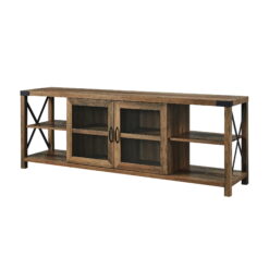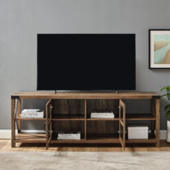 Woven Paths Farmhouse 2 Door Metal X TV Stand for TVs up to 80″, Reclaimed Barnwood