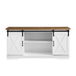 Woven Paths Farmhouse Sliding Barn Door TV Stand for TVs up to 65″, White/Reclaimed Barnwood