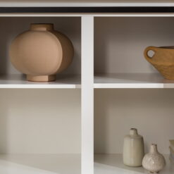 - Includes cord management features in back, adjustable shelves to fit your things and open and closed storage