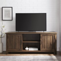 Woven Paths Franklin Grooved 2-Door TV Stand for TVs up to 65″, Dark Walnut