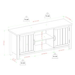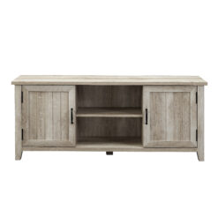 Wood slatted-style doors, painted metal handles, and exposed hinges make the Woven Paths Franklin Grooved-Door TV Stand the perfect match to your coastal-style living room. This entertainment center features three adjustable shelves that hold all your favorite items. Two doors on each side provide closed storage space for hiding clutter or cords, while a central open storage area is perfect for housing plants and books. Warp-resistant MDF wood and durable laminate make this entertainment stand long-lasting, while slightly tapered legs add character to the silhouette. Display your TV in style with the Woven Paths Franklin Grooved-Door TV Stand.