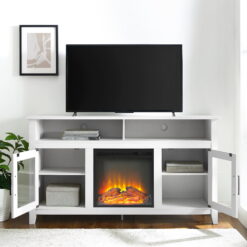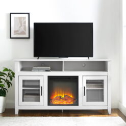 Woven Paths Highboy 2 Door Electric Fireplace TV Stand for TVs up to 65″, Brushed White