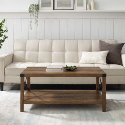 Woven Paths Magnolia Metal X Coffee Table, Reclaimed Barnwood