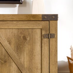 Woven Paths Modern Farmhouse Barn Door TV Stand for TVs up to 65″, Barnwood