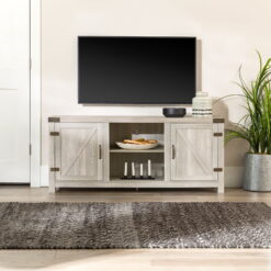 Woven Paths Modern Farmhouse Barn Door TV Stand for TVs up to 65″, Stone Grey