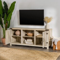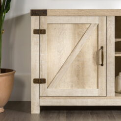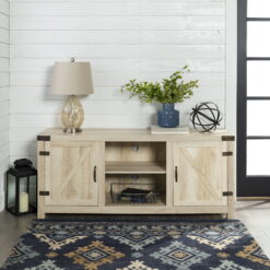 Woven Paths Modern Farmhouse Barn Door TV Stand for TVs up to 65″, White Oak