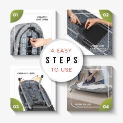 - Large Surface area for Ironing : 32″ X 12″ X 4.7″ while in use but still a small footprint of just 2.8″ when folded .Space saving storage for small spaces