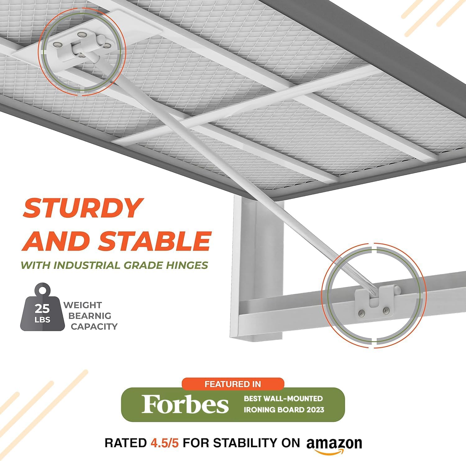 - SMALL SPACE FRIENDLY: Never compromise ironing board size for lack of a storage space. The foldable design of the Xabitat wall mount ironing board allows it to be used when needed and folded flush with the wall when not in use. Optimal for dorm rooms, small laundry room and apartments