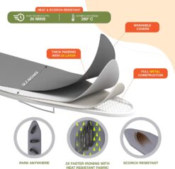 - STEAM / ELECTRIC IRON FRIENDLY: Professional machined perforated steel tabletop allows steam to escape faster aiding wrinkle removal and a sturdy ironing surface. The cotton ironing board cover and pad is non reactive to iron your expensive clothes reducing damage due to pigment transfer