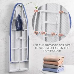 - EASY INSTALLATION (4 BOLTS): The folding ironing station can be easily installed with just 4 bolts(included) fixing the holder together with the wall or in a cabinet. It is structurally rigid with one click release hinges and does not take more that 20 minutes to install. Things needed: Drill / Screw driver Compare with similar items