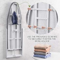 - EASY INSTALLATION (4 BOLTS): The folding ironing station can be easily installed with just 4 bolts(included) fixing the holder together with the wall or in a cabinet. It is structurally rigid with one click release hinges and does not take more that 20 minutes to install. Things needed: Drill / Screw driver Compare with similar items